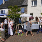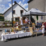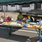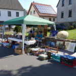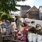 Entlang der Hauptstraße und in den Höfen hatten zahlreiche Anwohner und Aussteller ihre Tische mit Trödelware aufgebaut. Das Angebot reichte von gut erhaltenem Spielzeug, über Bücher, Porzellan, Bildern, Kleider, Werkzeug, etc. bis hin zum Elektro-Rollstuhl. Letzteres wurde auch tatsächlich verkauft.