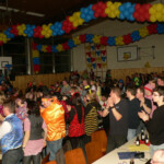 Unter den Klängen von „Bauer Heinrichs Schäferlied“ zog Hirte und Sitzungspräsident Ralf Schüller mit seinen 10 Schafen, die er anstelle des Elferrates von „Landenbergs Aggi“ zur Verfügung gestellt bekommen hatte, um Punkt 20.11 Uhr in die festlich geschmückte und voll besetzte Mehrzweckhalle ein. Rund 400 Närrinnen und Narren warteten gespannt auf das diesjährige Programm der Kappensitzung. Und sie mussten ihr Kommen nicht bereuen, denn es sollte ein mitreißender Showabend werden:
