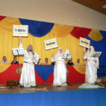 Dann kam Besuch aus dem Himmel (oder war es doch das nahe Unterdorf?). Die „Drei Engel“ Viktoria Utters, Josef Utters und Tobias Müller reisten an und wussten einige Neuigkeiten aus dem Dorf zu berichten. Mit ihren amüsanten und interessanten Stories wie „Dockweiler 21“ oder „Huldigung des Sitzungspräsidenten“ hatten sie die Lacher auf ihrer Seite.