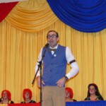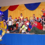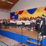 Traditionsgemäß versammelten sich zum Finale noch einmal alle Mitwirkenden auf der Bühne. Die Sitzungspräsidentin bedankte sich bei allen Akteuren und den Helfern im Hintergrund die zum Gelingen der Veranstaltung mitgeholfen haben.