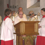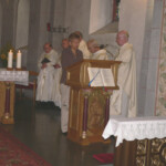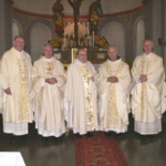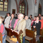 Nach der Hl. Messe ging die Feier mit der Familie des Jubilars sowie der ganzen Gemeinde im Pfr-Hubert-Schmitz-Haus weiter. Herr Bürgermeister Bruno von Landenberg überbrachte herzliche Glückwünsche der Zivilgemeinde Dockweiler und überreichte einen Scheck für die von Herrn Pastor Utters gegründete Reistafel. Der Musikverein Dreis spielte das Frühschoppenkonzert und nach dem gemeinsamen Mittagessen war um 14.00 Uhr die Vesper, mitgestaltet von unserer Schola. Zu den geistlichen Herren haben sich dazugesellt: der aus Dockweiler stammende Franziskanerpater Johannes Theresius Jaax, Prälat Gustav Sticken aus Köln sowie Diakon Bernhard Saxler aus Saarbrücken.