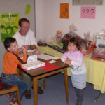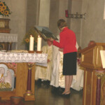 Bei Kaffee und Kuchen ging es im Gemeindehaus weiter bei Tanz- und Musikdarbietungen. Der Höhepunkt des Nachmittagsprogrammms war ein Diavortrag von Herrn Herbert Utters, ein Bruder des Jubilars. Er hatte Bilder von den 8 Primizen, die seit dem 2. Weltkrieg in der Pfarrei Dockweiler gefeiert wurden, zusammengestellt. Diese Darbietung wurde vom Publikum begeistert angenommen.