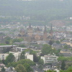 In der Nähe der Porta Nigra erwarteten uns bereits zwei Gästeführer. Bei einer Stadtrundfahrt, vorbei am Moselufer mit der Römerbrücke ging es dann stadteinwärts und vorbei am römischen Amphitheater hinauf auf zu einem Aussichtspunkt auf der Hunsrückseite, von dem aus man einen sehr schönen Panoramablick über die gesamt Stadt Trier hatte.